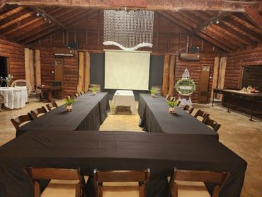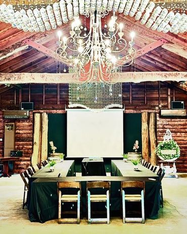 Imagine your meeting space in rustic nature. If it is nice outside, open up the doors and enjoy the natural vibe. Comfortable work chairs and plenty of room for training or team building activities.